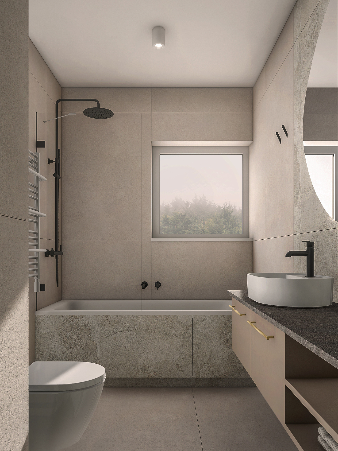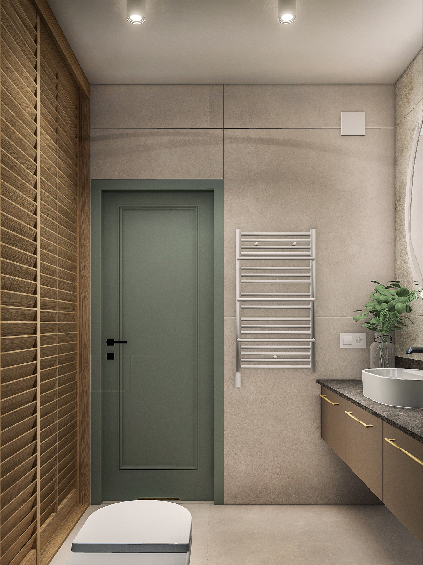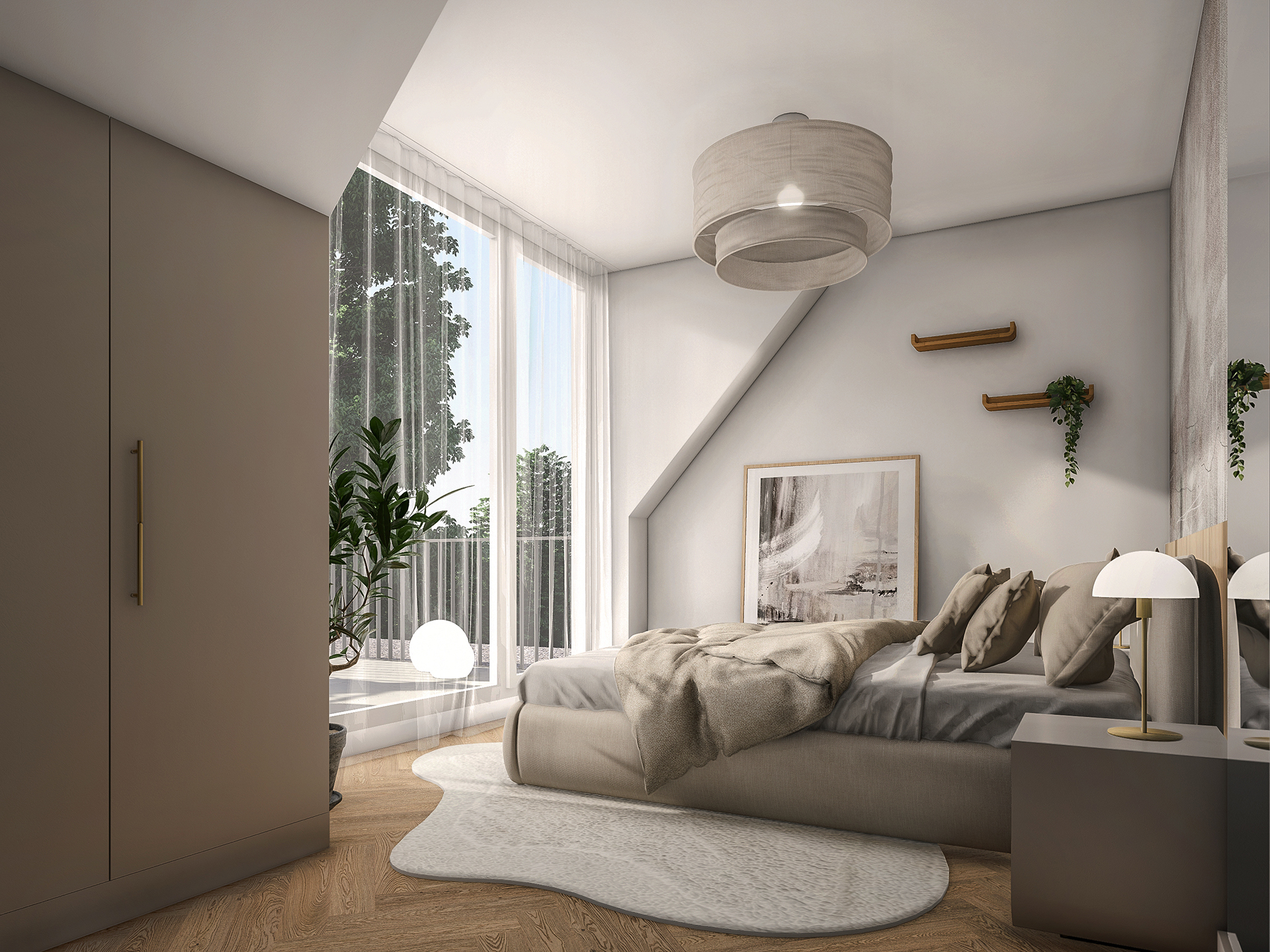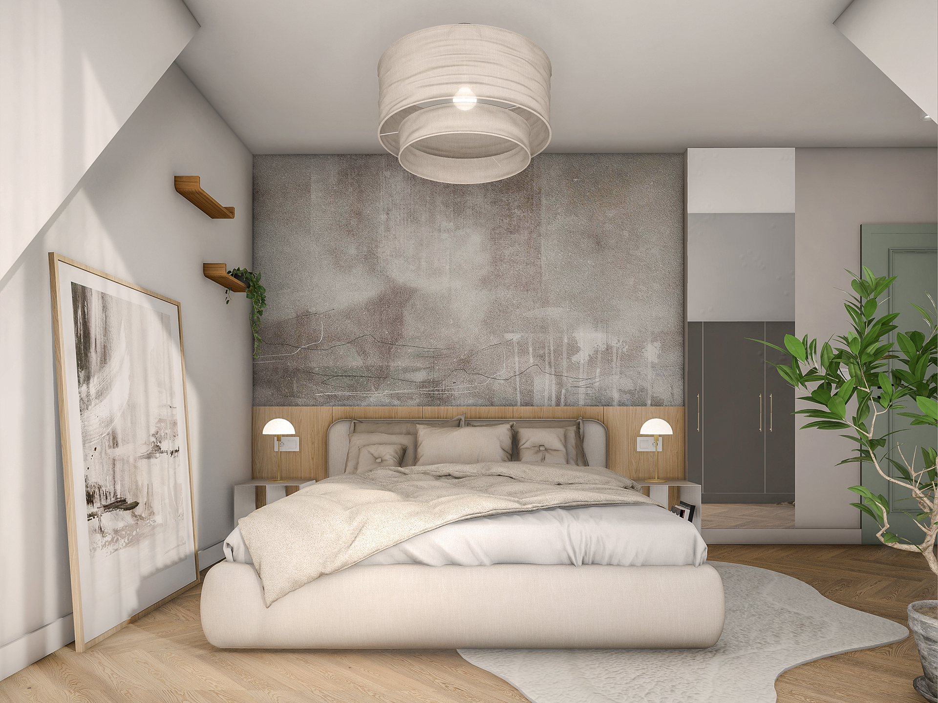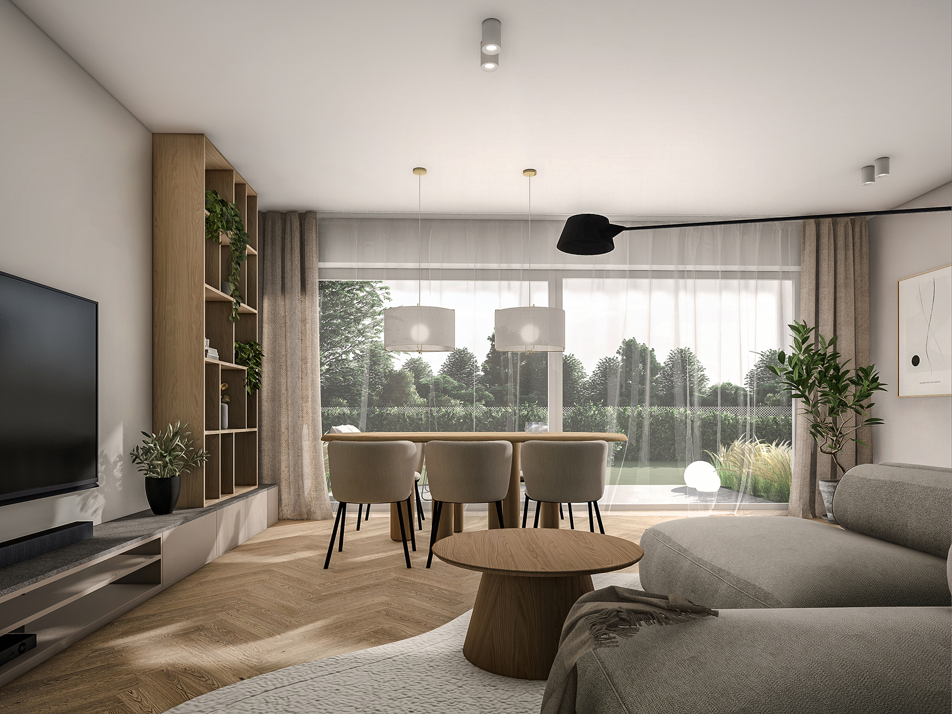 Projektowane wnętrza mają dawać mieszkańcom poczucie komfortu i ciepła korzystając ze stonowanej palety kolorystycznej (kolory ziemi). Naturalne drewno, odcienie beżu i akcenty zieleni – mają dobrze współgrać z architekturą i zewnętrznym wyrazem obiektu.