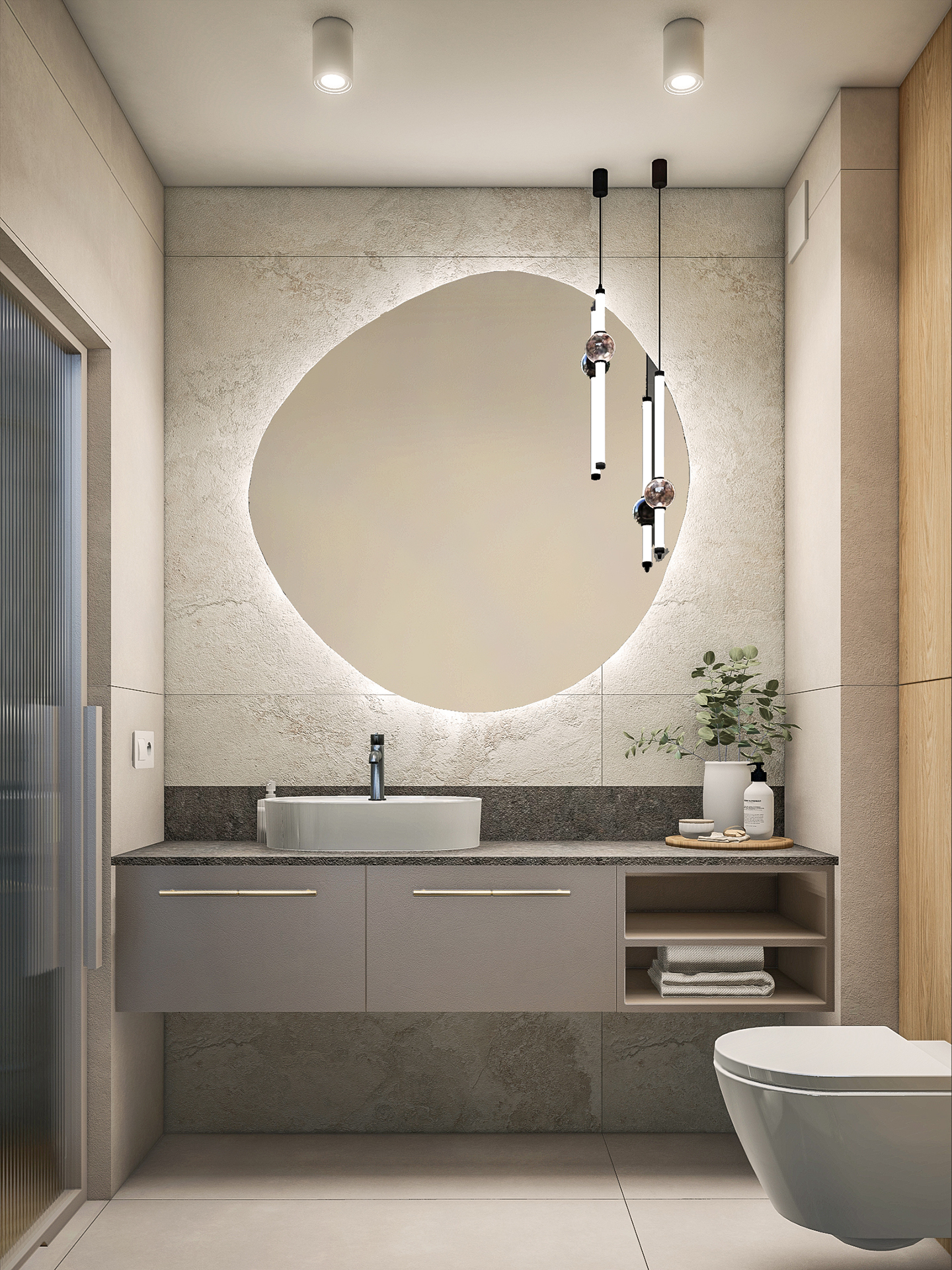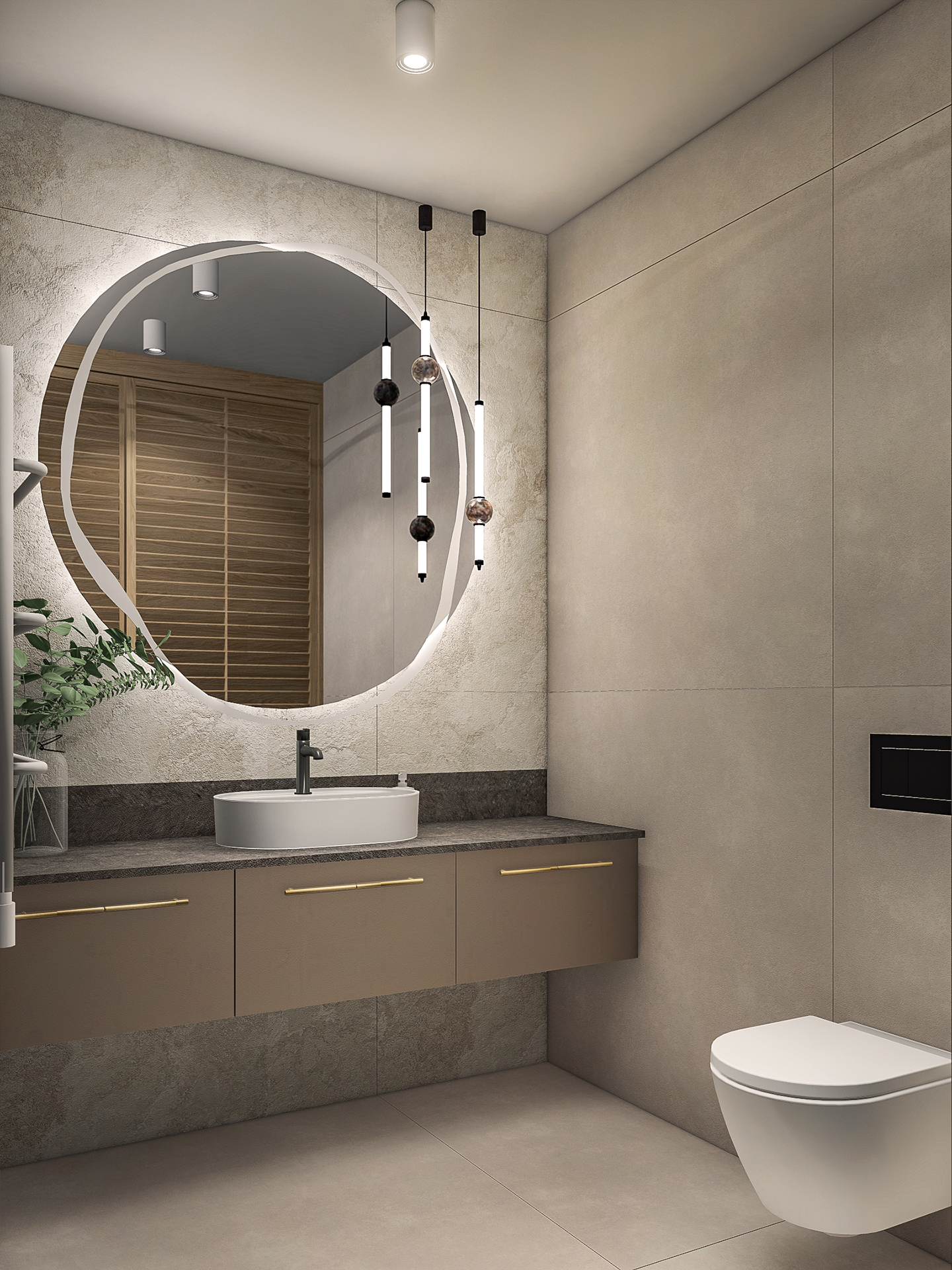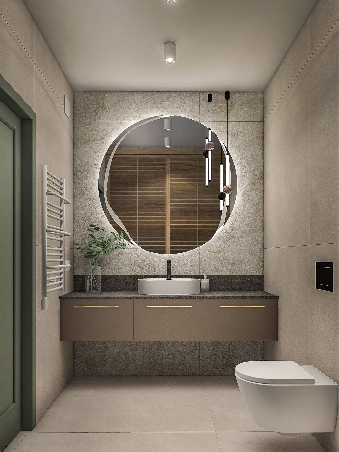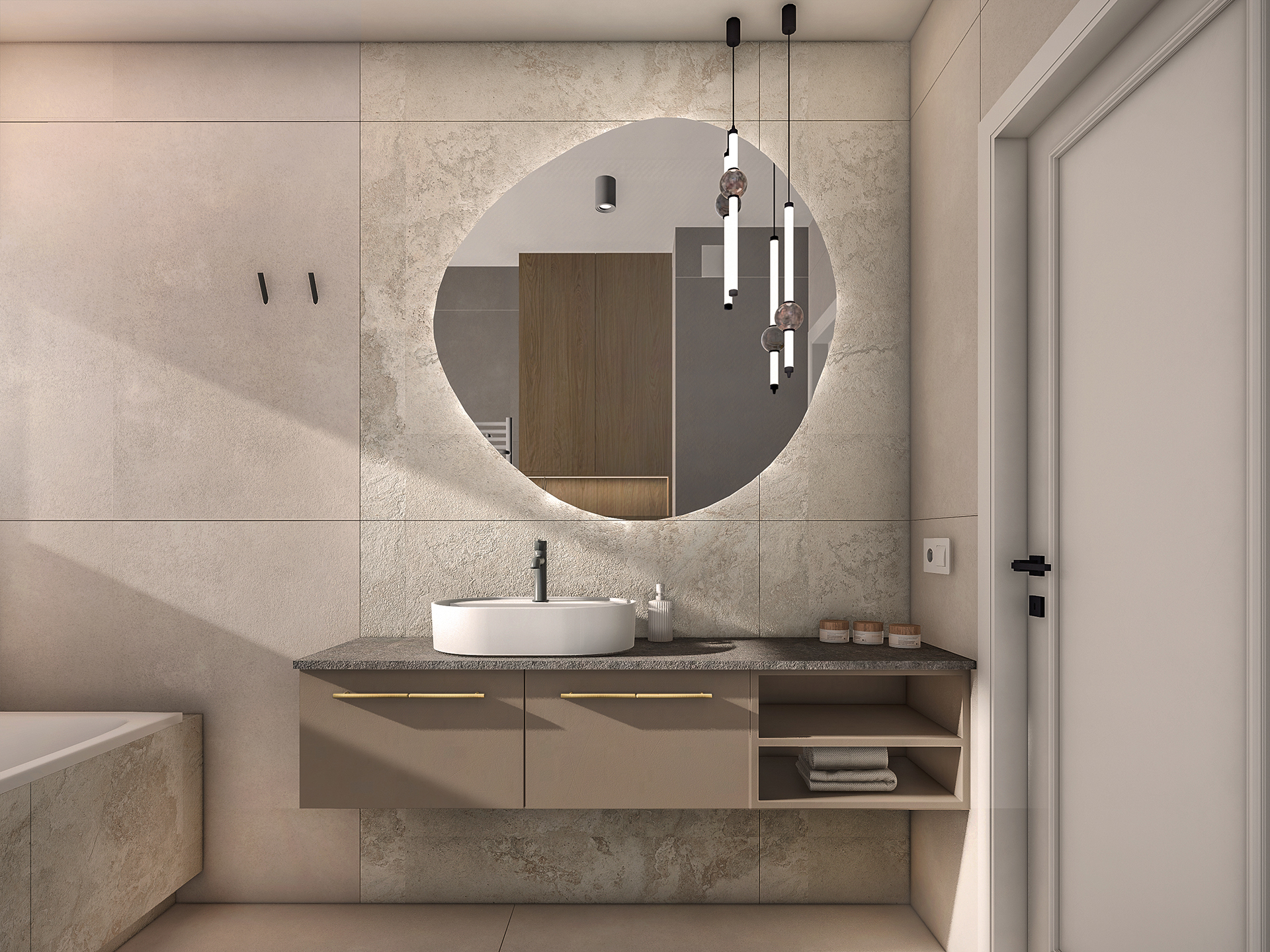 Projektowane wnętrza mają dawać mieszkańcom poczucie komfortu i ciepła korzystając ze stonowanej palety kolorystycznej (kolory ziemi). Naturalne drewno, odcienie beżu i akcenty zieleni – mają dobrze współgrać z architekturą i zewnętrznym wyrazem obiektu.
